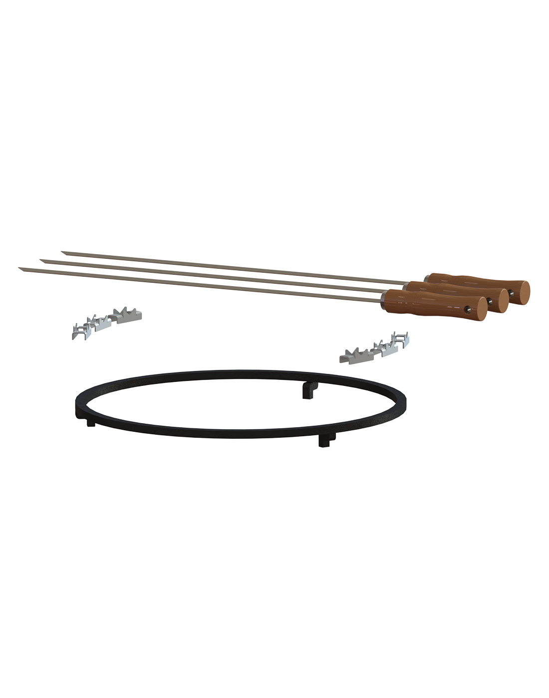 Progettato per offrire un’esperienza di cottura tradizionale sul brasero, include 6 supporti e tre spiedini, perfetti per una cottura direttamente sulla fiamma.
