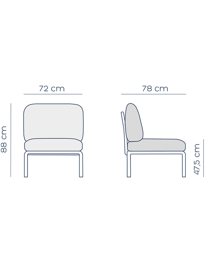Ogni poltrona Komodo viene fornita con cuscini sfoderabili, garantendo un facile manutenzione. I cuscini di colore lino di una generosa spessore di 18 cm, offrono un comfort superiore per momenti di relax senza eguali.