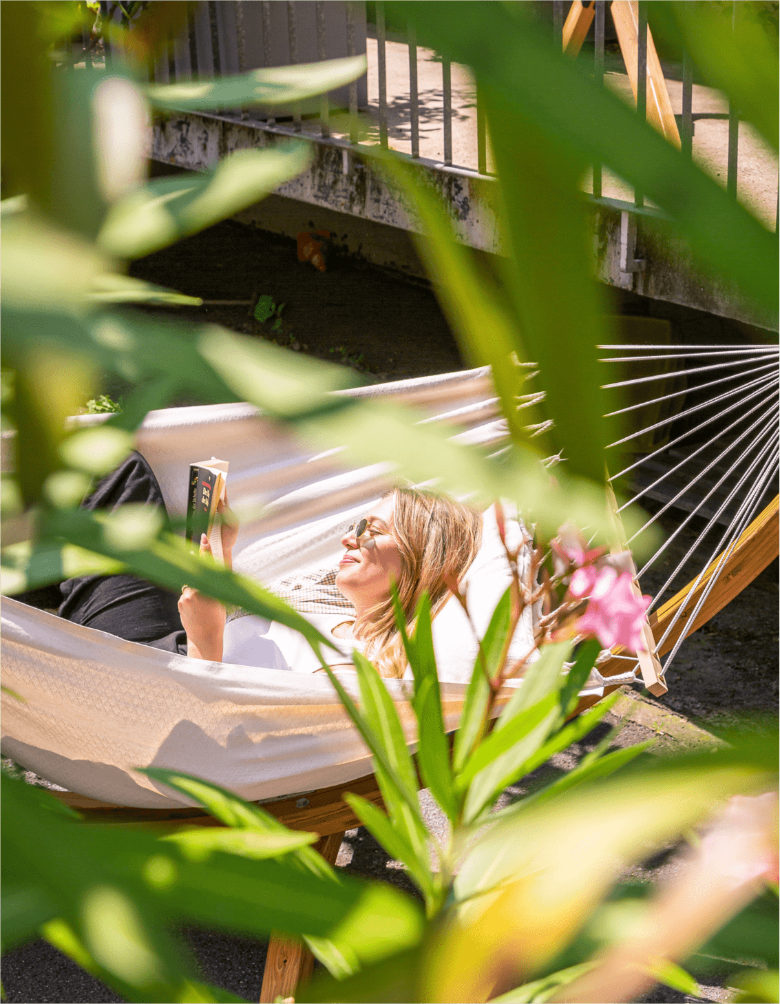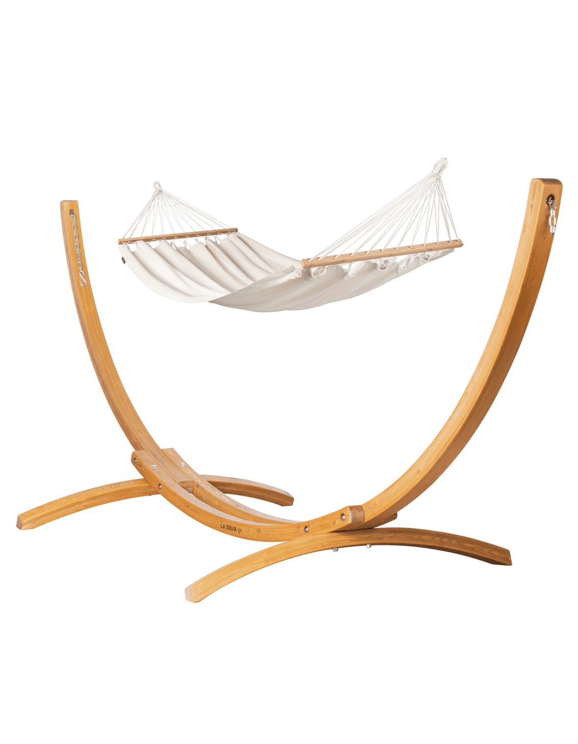 Disponibile come opzione: Il supporto in legno, che permette di posizionare il hamac dove si preferisce.