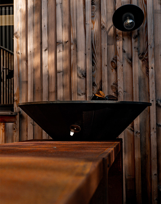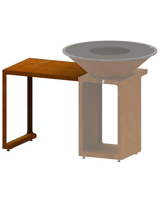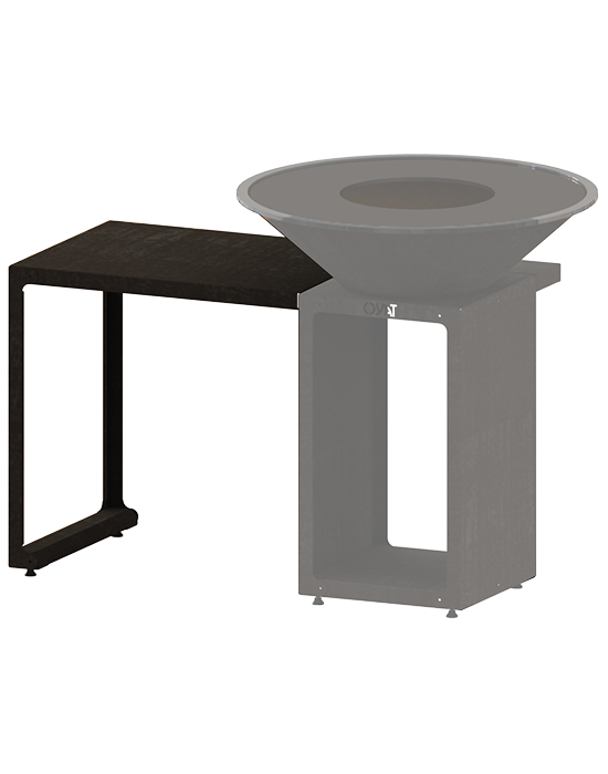 Il modulo TALMONT 80 è un piano di lavoro esterno da 80 cm, progettato per integrarsi perfettamente al tuo braciere o a un carrello. Ti permette di creare uno spazio di preparazione pratico e organizzato direttamente intorno alla tua zona di cottura.